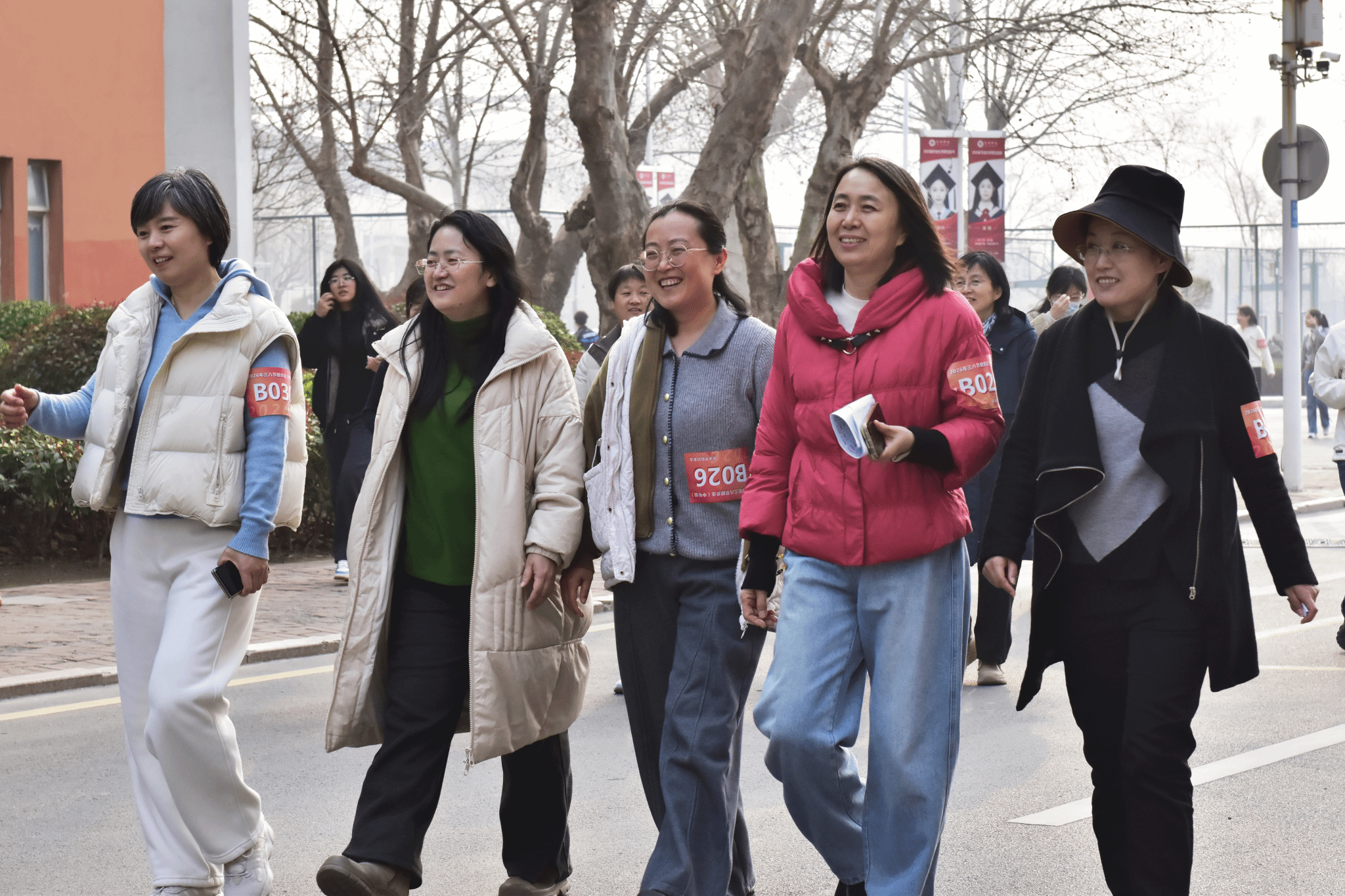 活动现场暖意融融、气氛热烈。随着发令枪声响起,女教职工们精神饱满、步履铿锵,沿着预设路线有序前行。春风作伴,校园为景,大家伴着和煦春风,踏着轻快步伐,用脚步丈量菏院的生机,把笑语洒满沿途的风景,充分展现了新时代菏院女性自信、健康、积极向上的精神风貌。